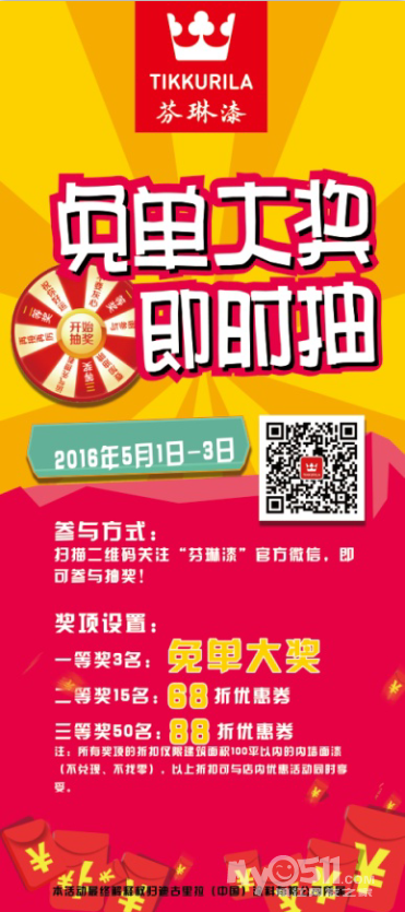5月7日定欧家板送芬琳黑板漆,给家里增加一面有特殊功能的墙,任宝贝随便涂鸦!还可以参加芬琳五一幸运即时转额。