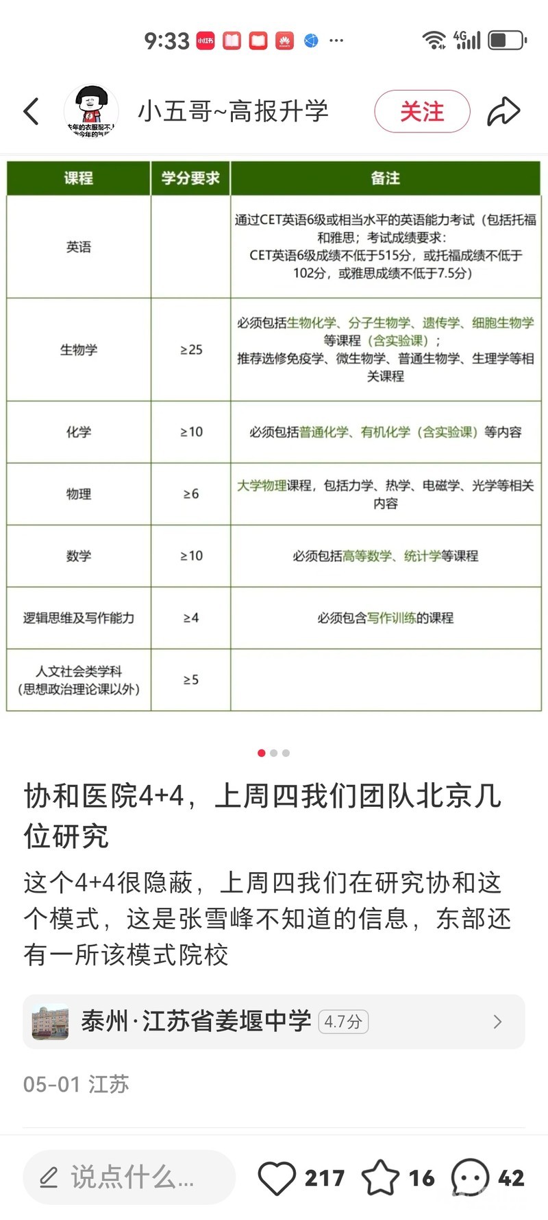 确实4+4如果严格执行招生政策,可以培养一批学医出身的高级科研人才,问题出在招生的执行上。下图是进协和4+4学分具体要求