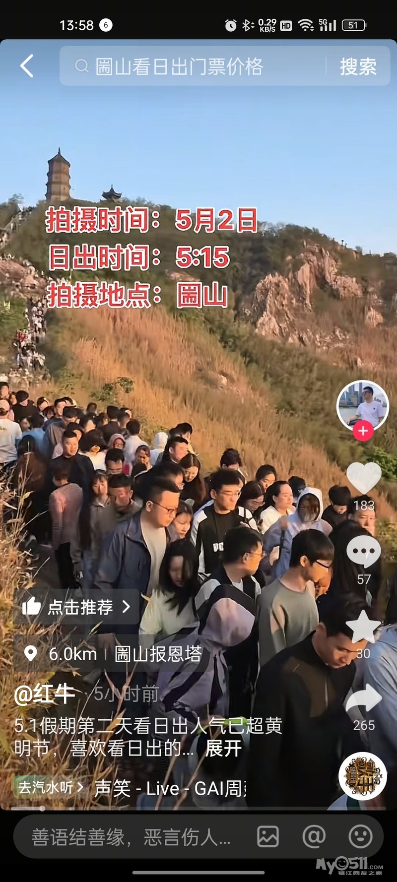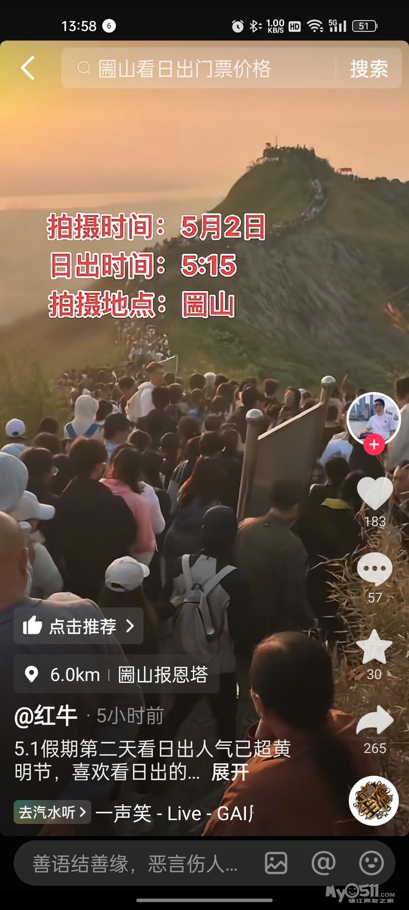 今天早上大几万人看日出,凌晨四点来的已经挤不上去了