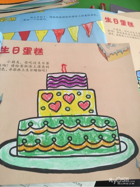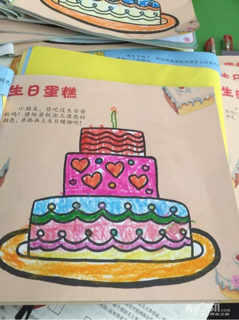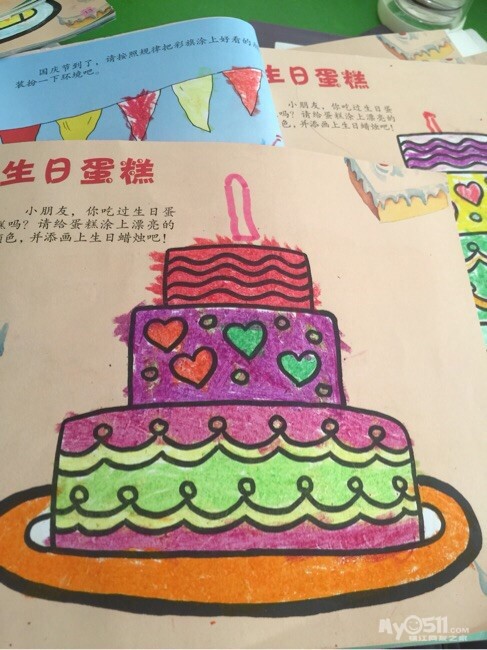 宝贝们自己设计的蛋糕颜色,都很漂亮哦