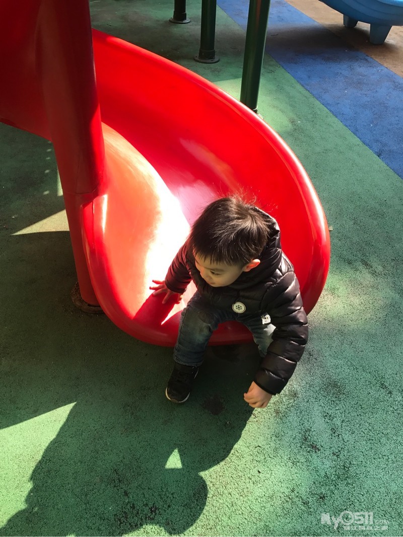 晒着太阳玩滑滑梯