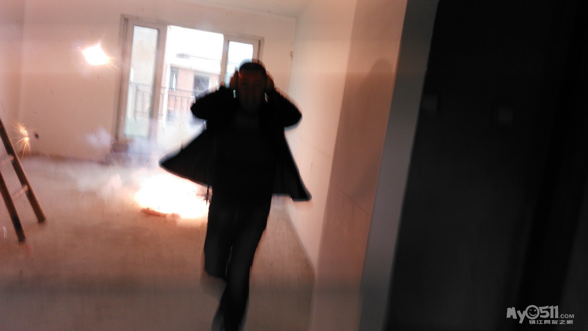 9时18分,吉时已到,点火,快跑,帅帅的背影不是俺,是现浇的张师傅~话说这室内放鞭炮声音真是大啊