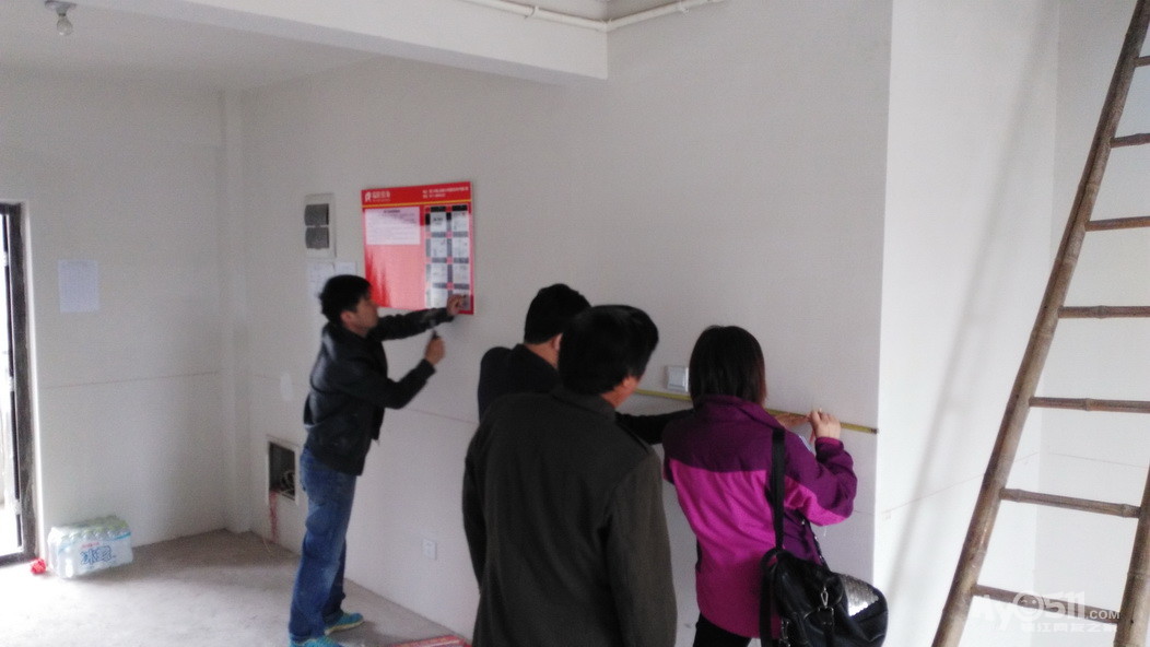 约定的开工的时间是9点18分,俺们8点50到了新房子,刚进门一会儿就看到楼下装潢公司的人和现浇的师傅也到了,有点意外的是,瑞阳的老总也来了,没想到俺们这种小工地老总也会亲自到场,先赞一个,希望以后继续关心~简单打过招呼后,各自进入工作状态,后面忙着钉告示牌的帅哥是俺们的项目经理,看上去人不错,总是笑眯眯的,相信应该会合作愉快