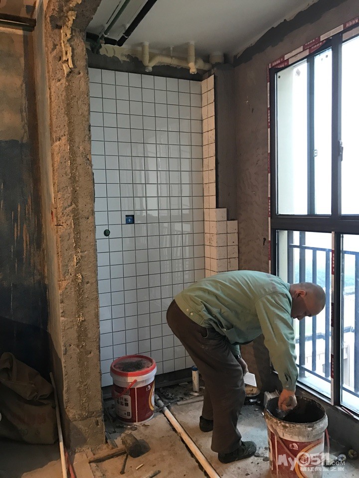 还在贴瓷砖呢,进度缓慢啊