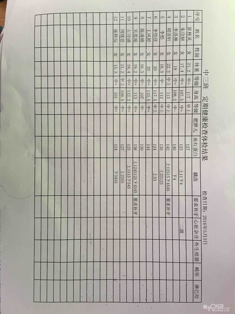 5月3日健康检查体检结果哦