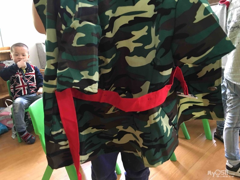 今天宝宝们的六一舞蹈彩排效果很棒哦!为了正式表演时可以有更好的效果。请家长朋友们帮帮忙咯:1.请将宝宝的红腰带分四个点用针线缝在上衣第二个纽扣的位置,防止表演过程中腰带滑落。2.请将红色帽子按照宝宝的头围大小稍做加工,防止表演过程中滑落。以上两点家长可看下面的详细图示进行操作,我已经将要加工的位置标示出。 如有疑问可短信询问。 感谢配合啦!