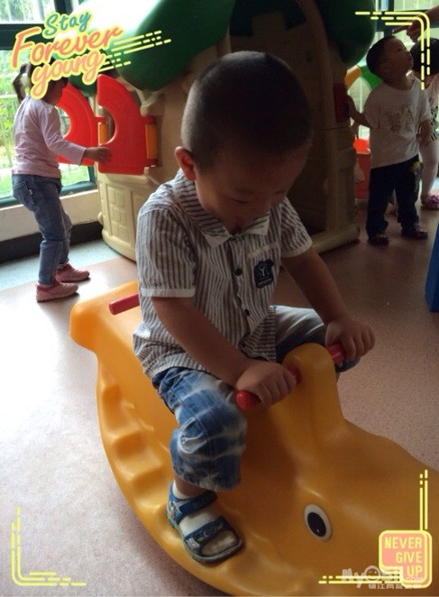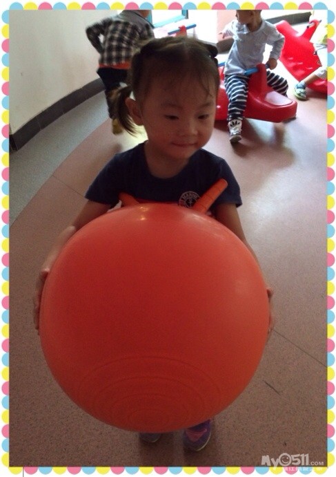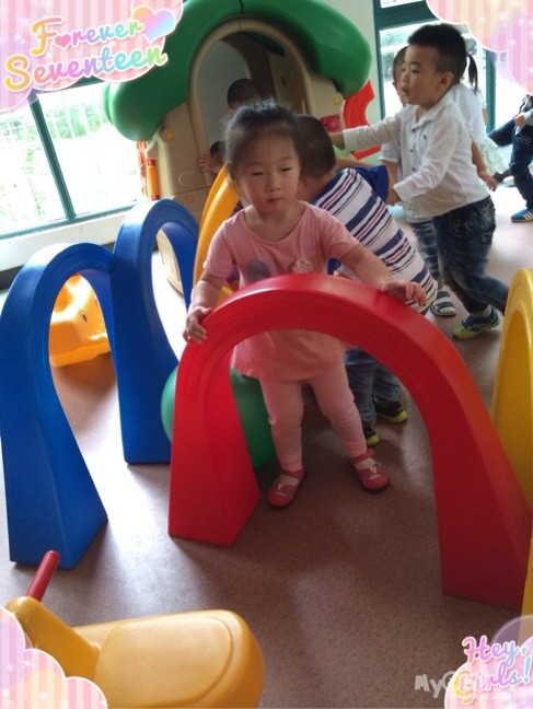 由于今天早晨下雨了,操场地面有积水,所以带宝宝们就在楼下大厅活动了会,大家都玩的都很开心呢!不过有的宝宝激动的到处跑,所以没能拍清楚
