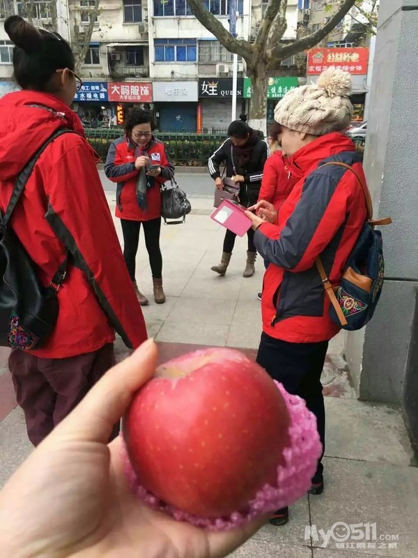 平安夜不平凡!突然的降温让本就寒冷的冬日增添了丝丝寒意,北风呼啸,从里自外透心凉。0511爱心家园的志愿者们冒着严寒、放弃休息,带着众人的期盼奔波在大街小巷,走访贫困家庭。今天京口区走访的不仅有家园资深志愿者蛋炒饭糊了、可人儿、牵挂、绚丽、马兰花开、兔八哥、丹妮,还有新加入的两位新成员,她们都是带着孩子一起参与走访,在队长香蕉书的带领下共走访了7户人家。队长香蕉书非常有心,一到集合地点就给我们每个志愿者发放了一个红彤彤香喷喷的苹果,寓意“平安果”。一行人,就如一道靓丽的风景线。走到哪儿,都能得到陌生人的赞许和相助。