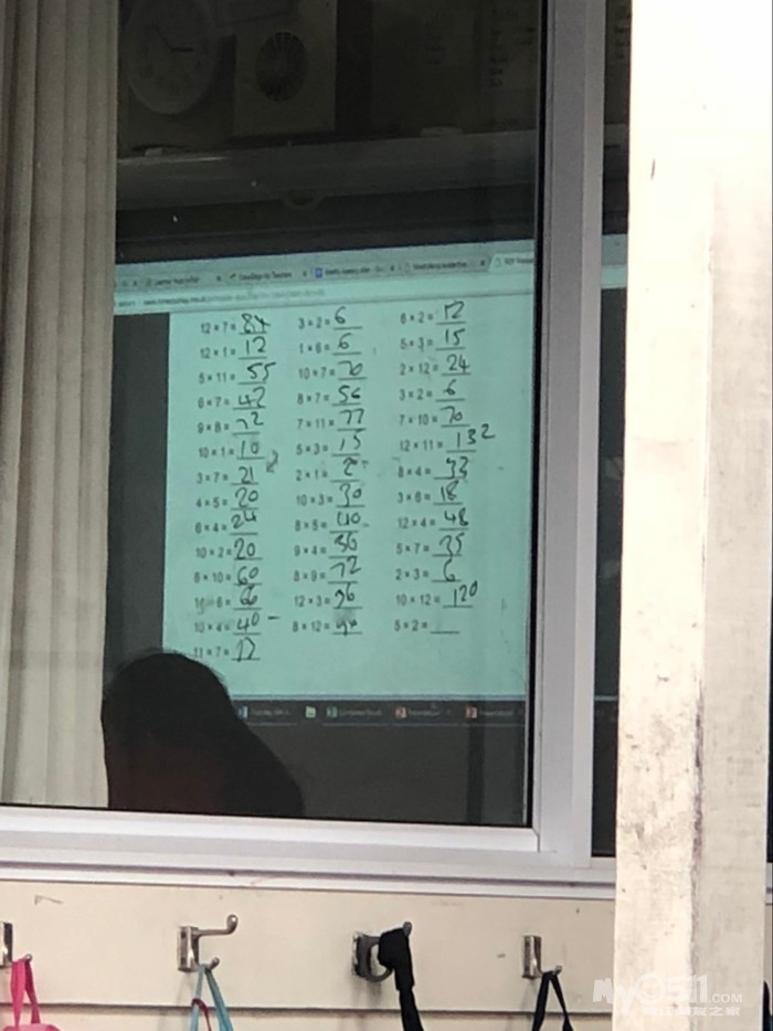 今天下午去学校接放学到的早了点,正好看到苗苗教室在上数学课,她上的是当地的六年级,数学课程相比于国内来说是so easy