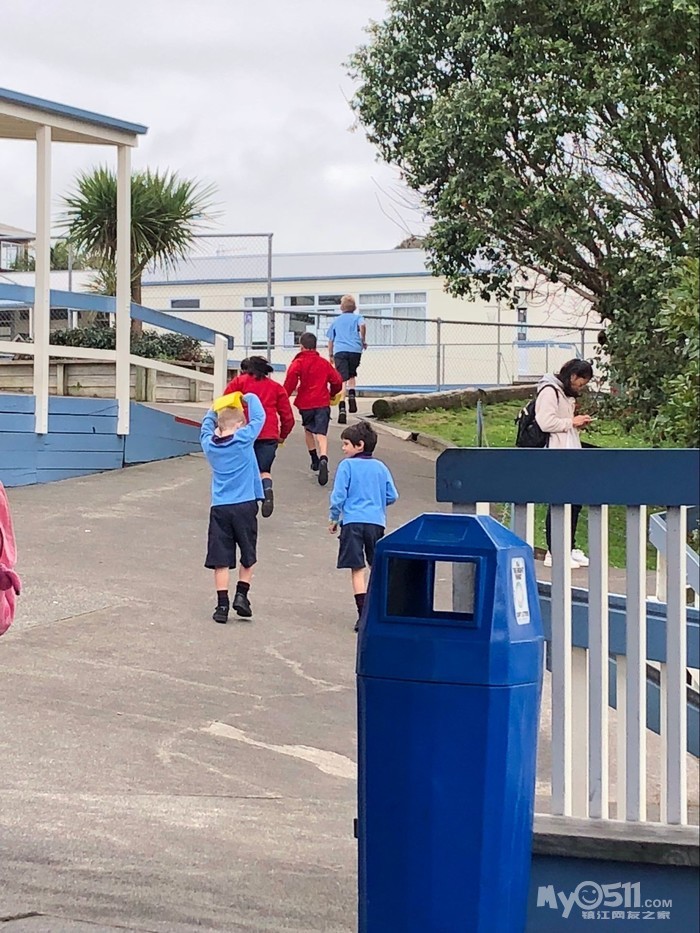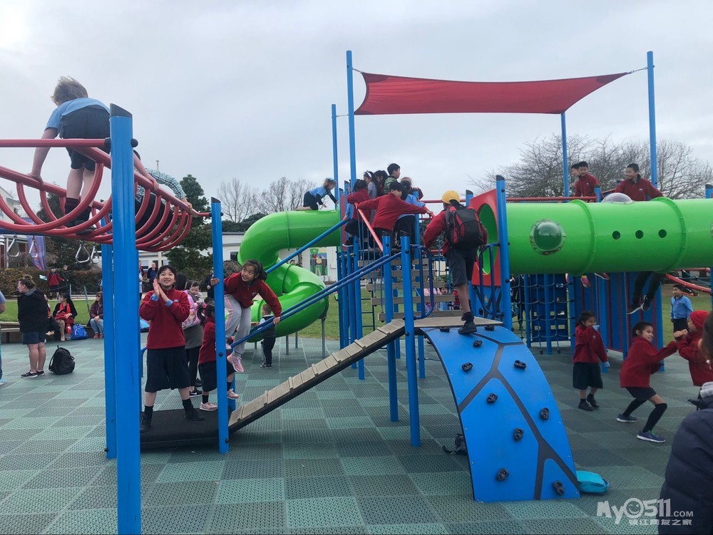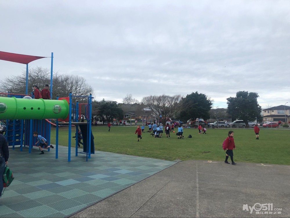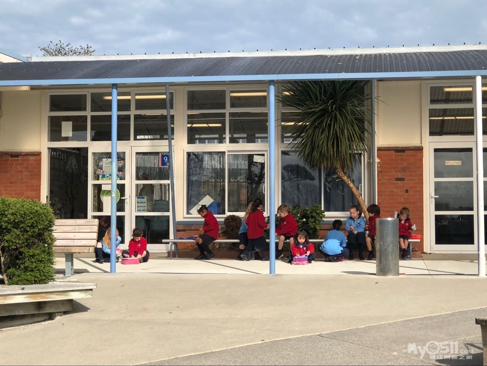 新西兰小学生真的很幸福,每天只有三节课,早上8点半到校,45开始上第一节课。10点半有个15分钟的tea time,孩子们自己带一些零食过去学校里面吃。吃完了继续上课。中午12点是午餐时间,自己带午餐,或者在学校订餐,大家去教室外面随地而坐,简单吃完后就去操场上玩。下午1点半继续上课,3点放学。放学后操场上的健身设施上到处都是玩耍的孩子。另外也没有回家作业。。。