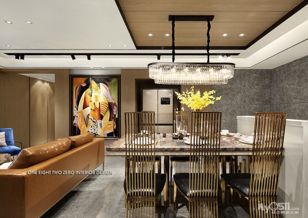 正餐区是不容忽视的区域,在表现设计感的同时,又要不失秩序。跳舞兰夺目的黄色提供了视线聚焦点,就像它的名字一样,花瓣错落,如身着裙摆的少女一般翩翩起舞。