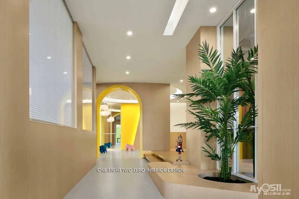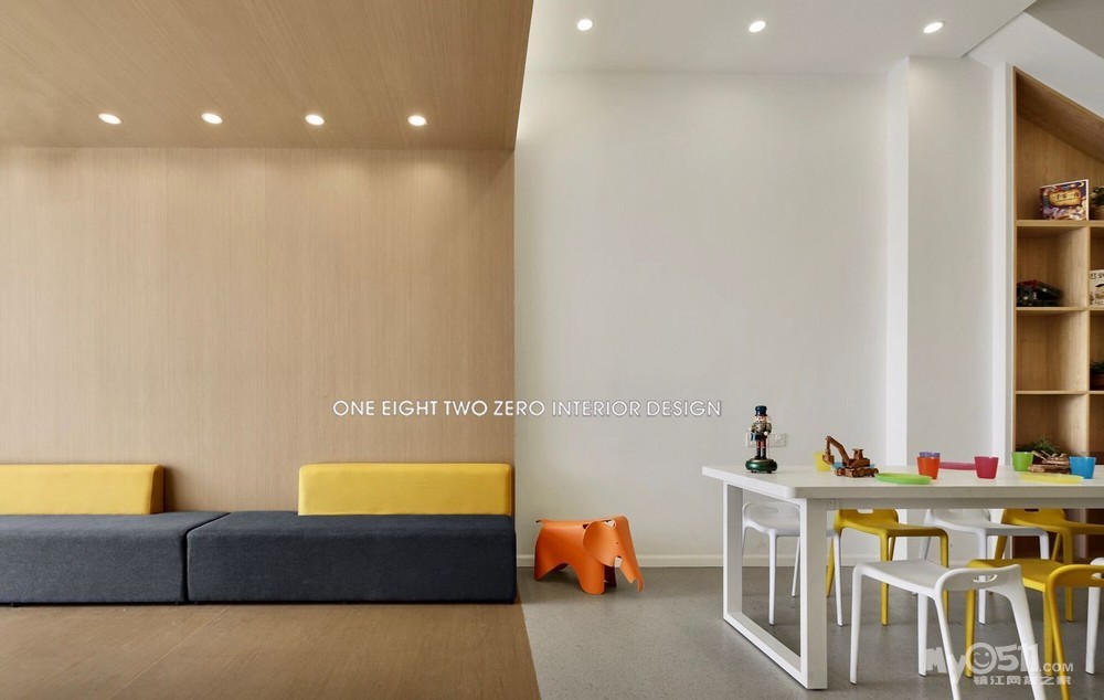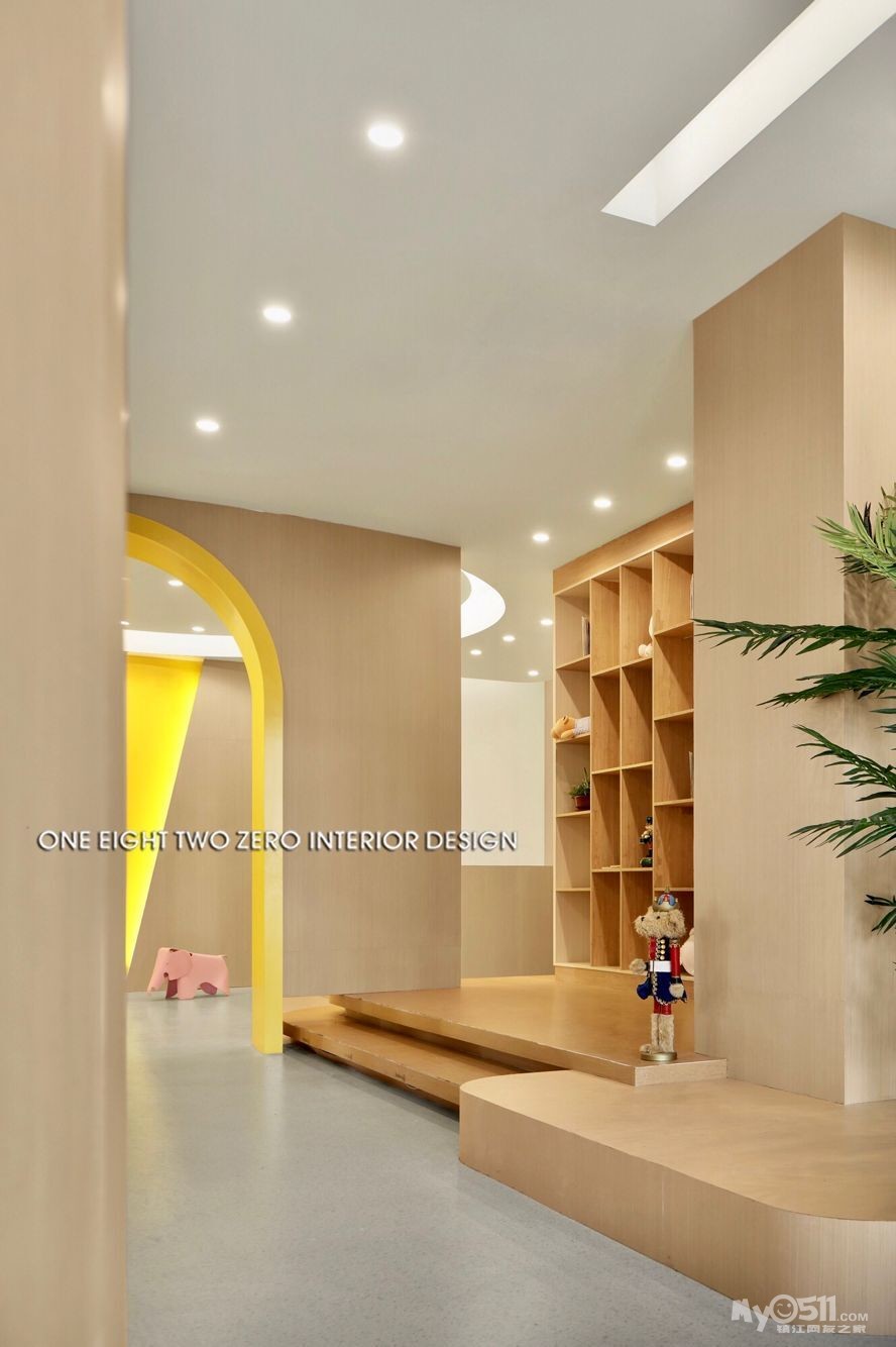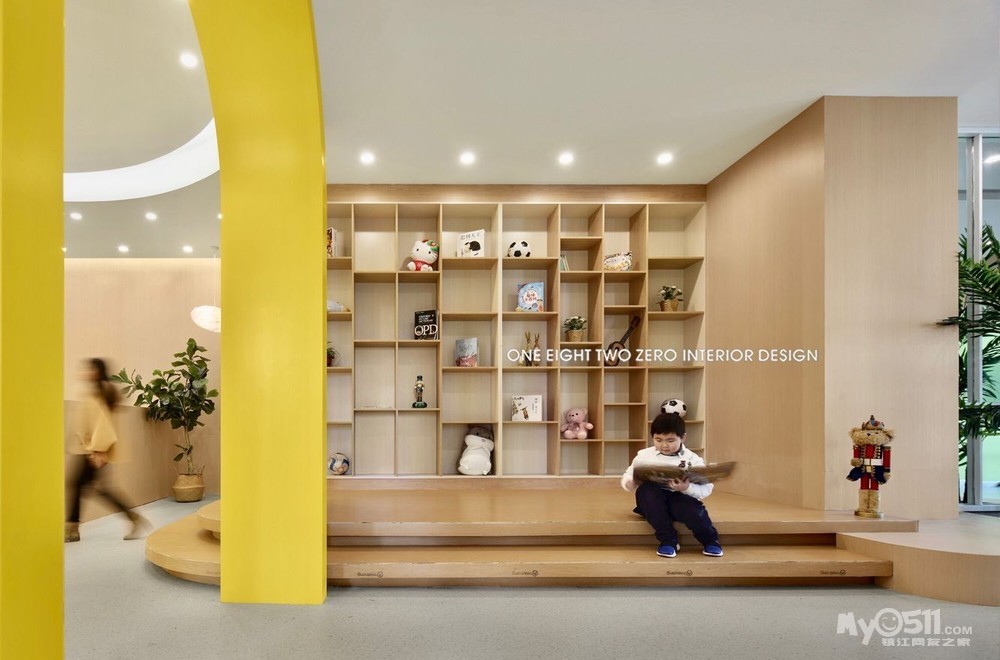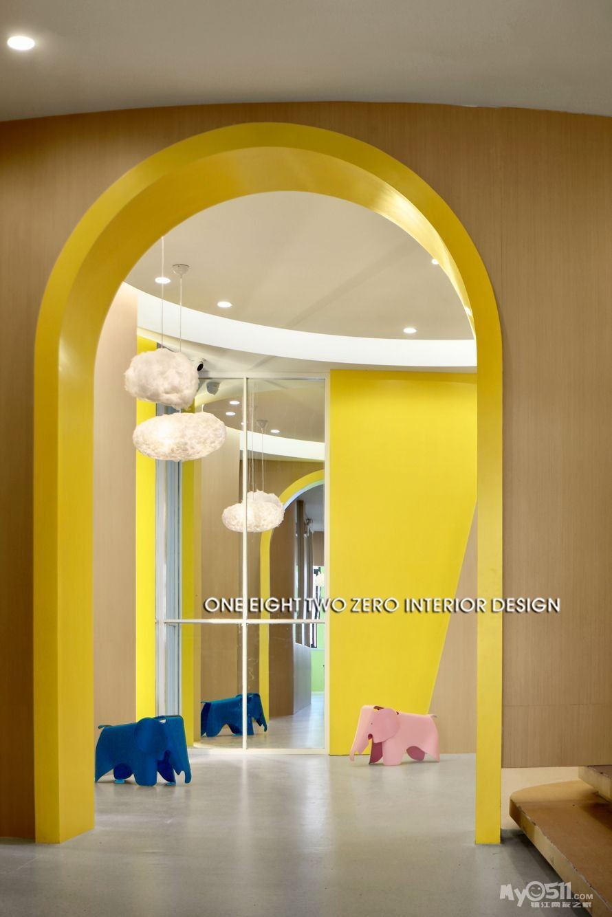 整体空间不仅迎合了教学环境的各种需求,还以一系列开放灵活的空间规划营造出舒适的成长空间。在视觉表现上,设计师选择了一种宁静、简练、温暖且兼具现代美感的表现手法,用简练的几何线条、明快的色块、柔软的纹理及材料,构筑了一个高品质的教育培训机构。