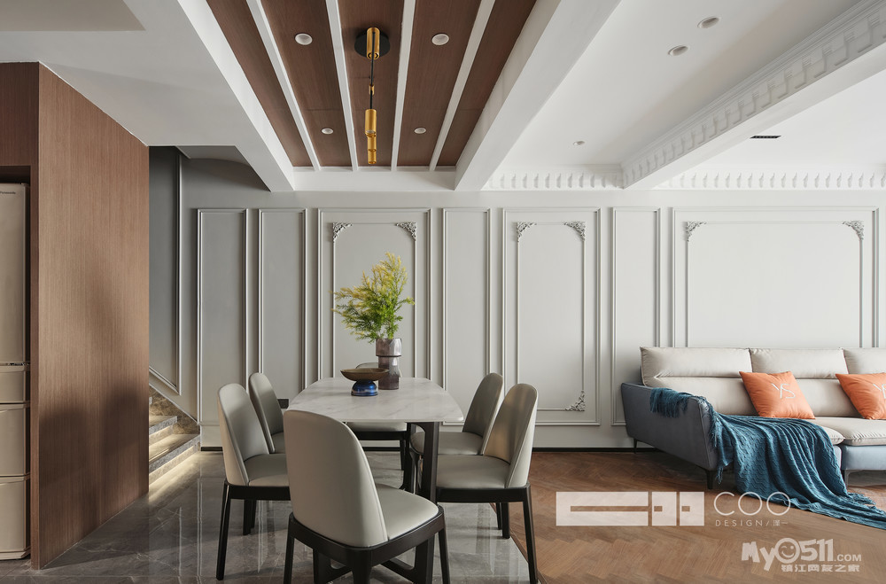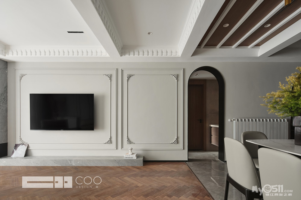 整体设计以现代框架为主题,融入法式浪漫的精致线条,整个家既有时尚的轻奢质感,又有时光打磨后的稳持优雅。