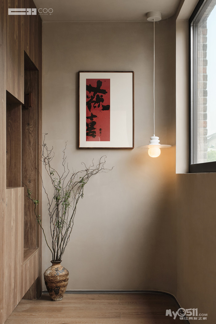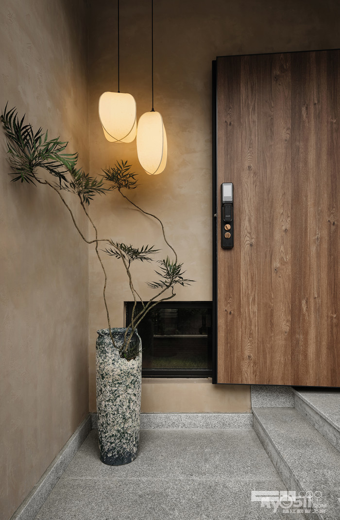 外厅预留两盏门灯,满满的归家仪式感;墙体加开窗洞,增强室内与自然的联系。