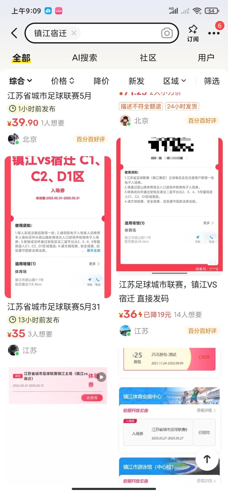 » 江苏城市足球联赛的票。大家都抢到了吗