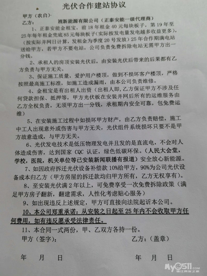 老家电工打电话来,说租用屋顶装光伏板,一间房初装费4500,装好给钱,另外每年还有收益,我看了一下协议,甲方,乙方,金租宝,出租人,承租人,一份协议有这么多身份我怎么感觉不靠谱?是不是有什么猫腻?需要我提供身份证,房产证和银行卡,怕不安全,但农村又有好多家装了好像也没事,比如一个人租房住,需要房东提供身份证,房产证和银行卡,怎么都感觉有点不对劲,父亲又舍不得那几万块钱初装费,头痛,有懂的网友能帮忙分析分析吗?